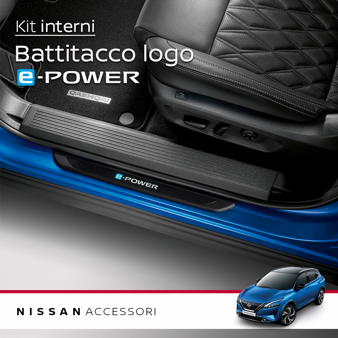Il battitacco illuminato con logo e-Power per la Nissan Qashqai e-Power è un accessorio che protegge la soglia della porta e mostra il logo e-Power. Serve a prevenire graffi e usura sulla soglia, aggiungendo un dettaglio distintivo alla vettura.
